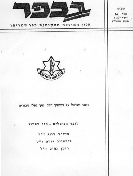 עלון לזכר נופלי כפר שמריהו ובניהם נחום