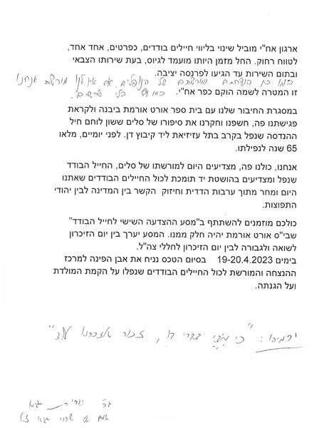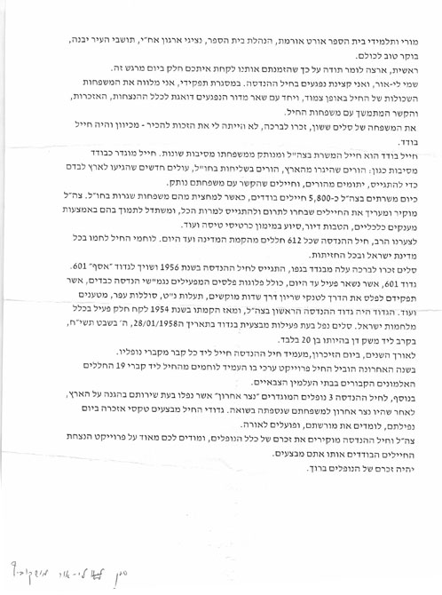 פנייה לבני המשפחות השכולות וליוצאי החיל